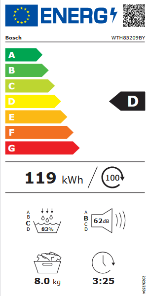 Сушилня Bosch WTH85209BY е с най-екологичния агент (R290)