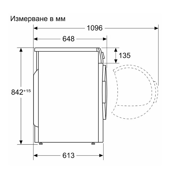 - Дълбочина с отворена на 90° врата 1096 mm